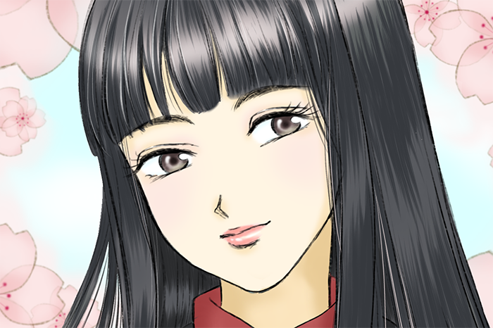 桜と女性イラスト