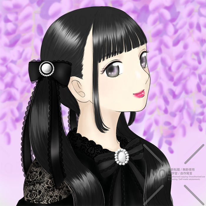 黒髪ツインテールのレースの服を着た女の子を描きたくてアイビスペイントのレースの素材なども使用しました。