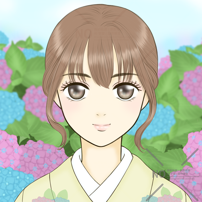 アジサイの写真をよく見かけるようになり、アジサイの背景で着物を着た女の子を描きたくてアイビスペイントで背景のお花からIpadで手書きで描きました。